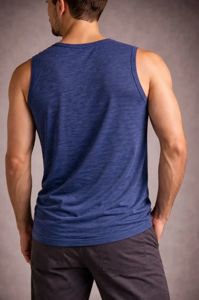 Erkek Flamlı Kumaş Sıfır Kolsuz Atlet Basic Spor Üst, Günlük Ve Fitness Kullanımına Uygun – İndigo
