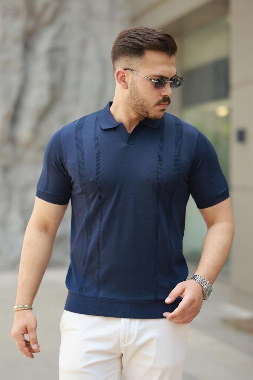 Erkek Örgü Desenli Renkli Kısa Kollu Triko Tişört