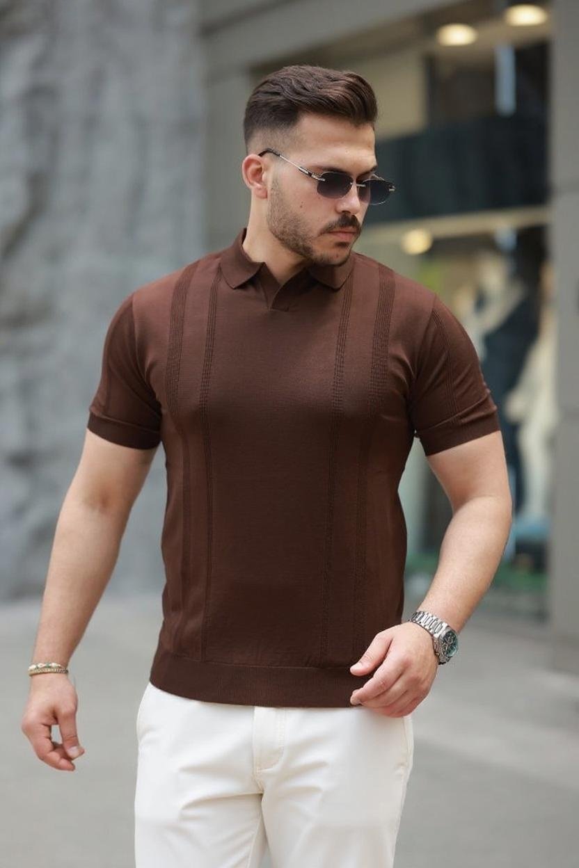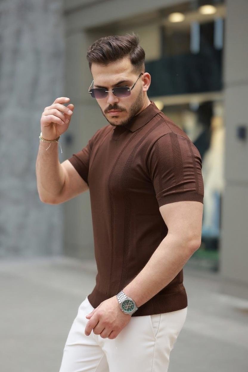 Erkek Örgü Desenli Renkli Kısa Kollu Triko Tişört