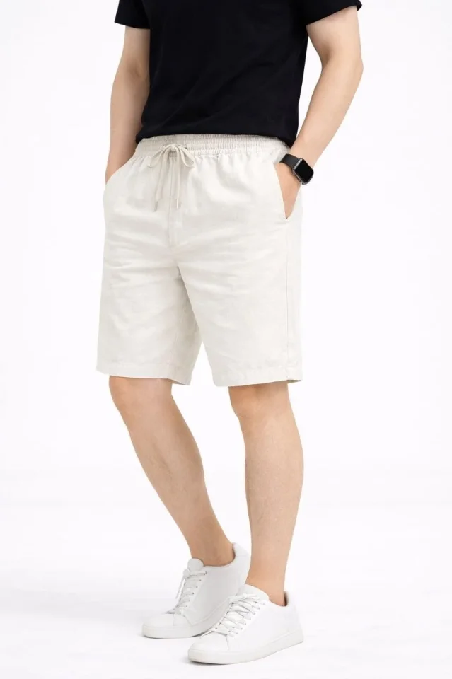 Erkek Keten Kumaş Cepli Rahat Kesim Bel Lastikli Şort – Beyaz