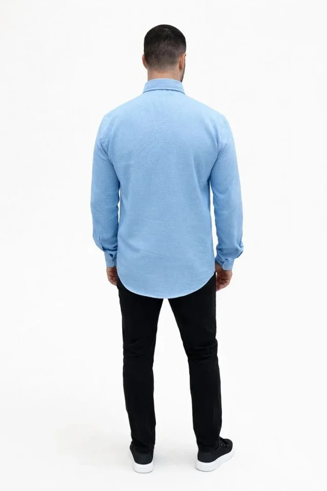 Erkek Waffle Kumaş Uzun Kollu Düğmeli Açık Yaka Regular Fit Gömlek – Saks Mavisi