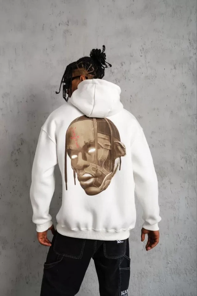 Erkek Kordonlu Arka Maske Kordon Saçlı Kapüşonlu – Beyaz