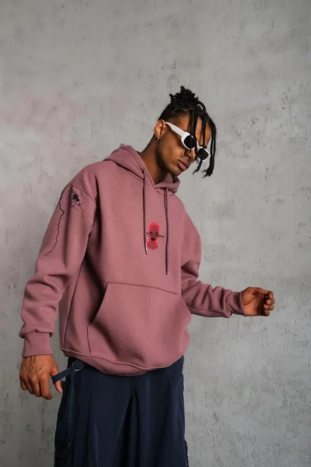 Erkek Maske Baskılı Kapüşonlu Sweat – Gül Kurusu