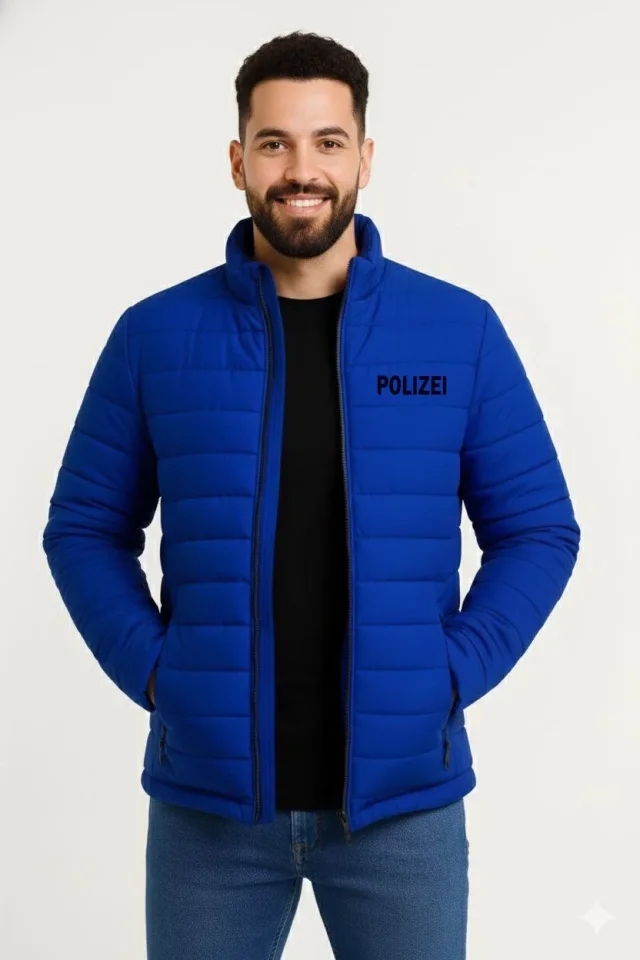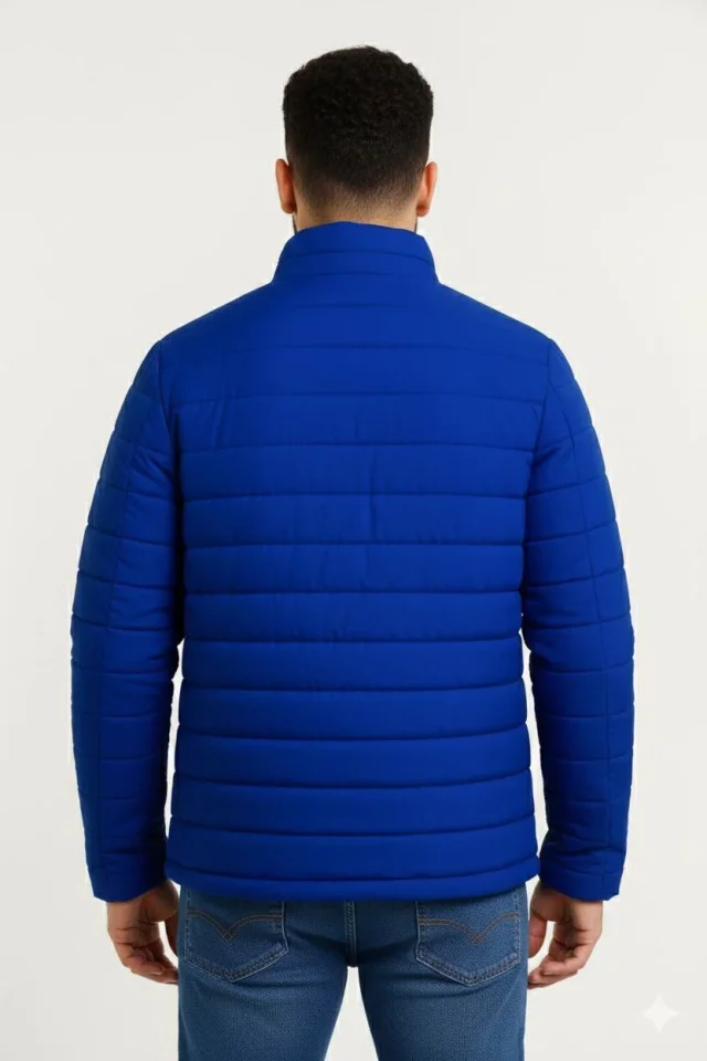 Erkek Mikro Su İtici Kapitone Baskılı Astarlı Fermuarlı Bomber Mont – Saks Mavisi