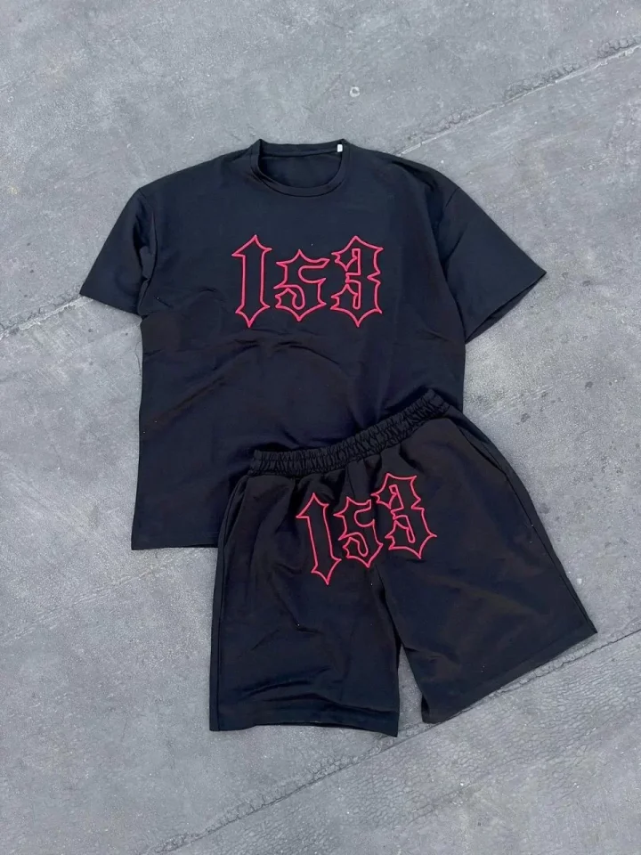 Erkek Nakış İşlemeli Şortlu Takım – Siyah