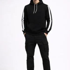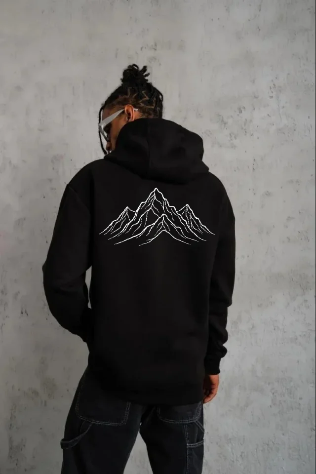 Erkek Kapüşonlu Sweatshirt Hoodie 3 İplik Şardonlu Pamuklu Kumaş, Önü Baskılı, Fermuarlı Rahat Kalıp, Kışlık Ve Sokak Stili Sweat – Siyah