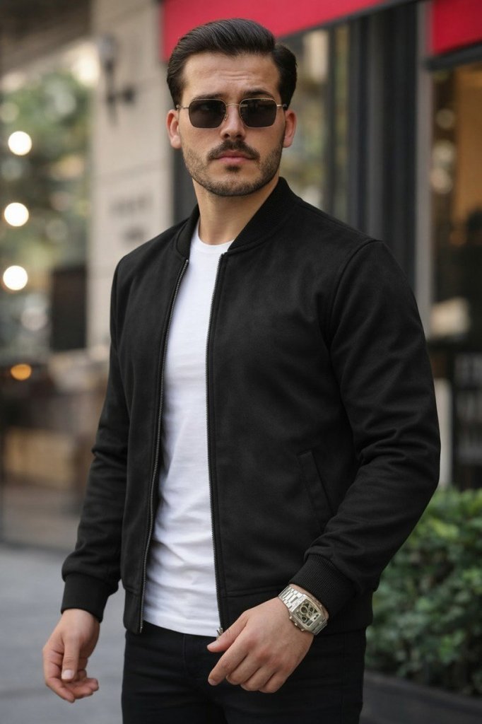 Erkek önden Fermuarlı Içi Astarlı Süet Ceket