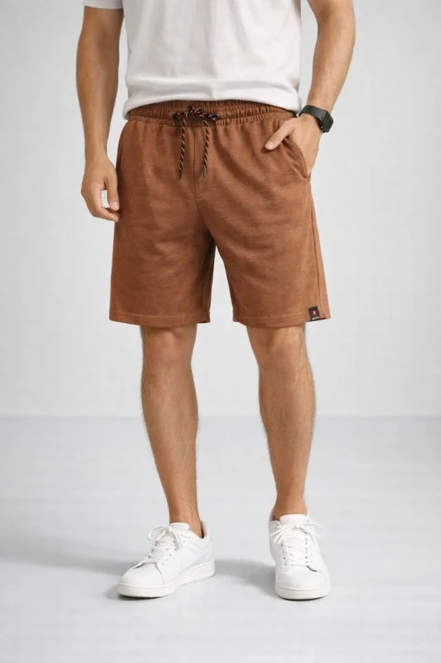 Erkek Otoban Dokuma Şort Beli Lastikli Bağcıklı, Cepli, Rahat Kesim Günlük Yazlık Şort – Kahverengi