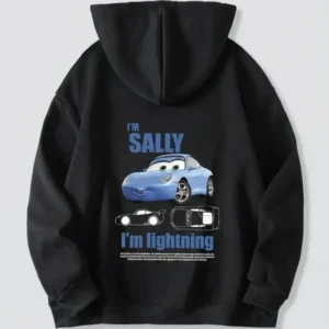 Sevgililer Günü Özel Kapüşonlu Araba Baskılı Oversize Sweatshirt – Siyah