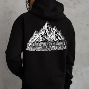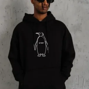 Erkek Nihilist Penguen Temalı Oversize Kapüşonlu Sweatshirt – Siyah