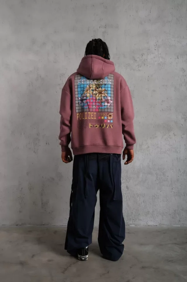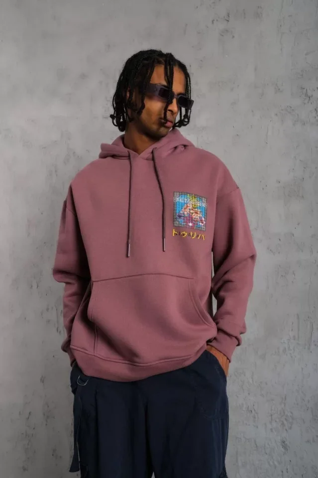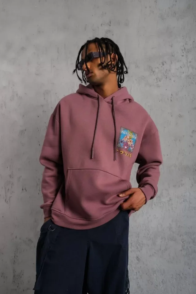 Erkek Patel Six Baskılı Kapüşonlu Sweat – Gül Kurusu