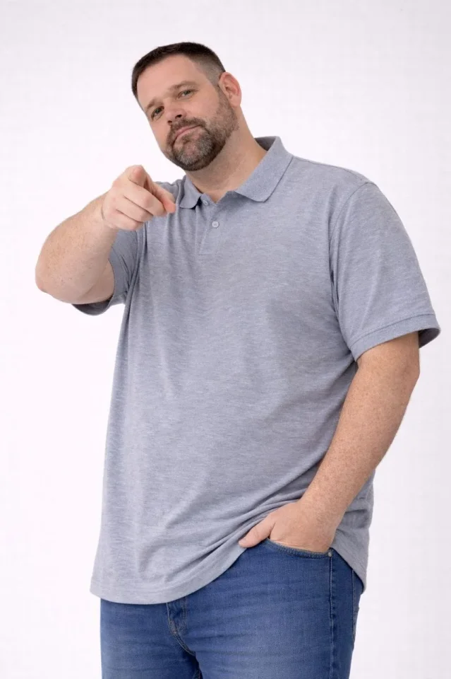 Erkek Pike Kumaş Düğmeli Yaka Battal Büyük Beden Günlük Kısa Kol Tişört T-shirt – Gri