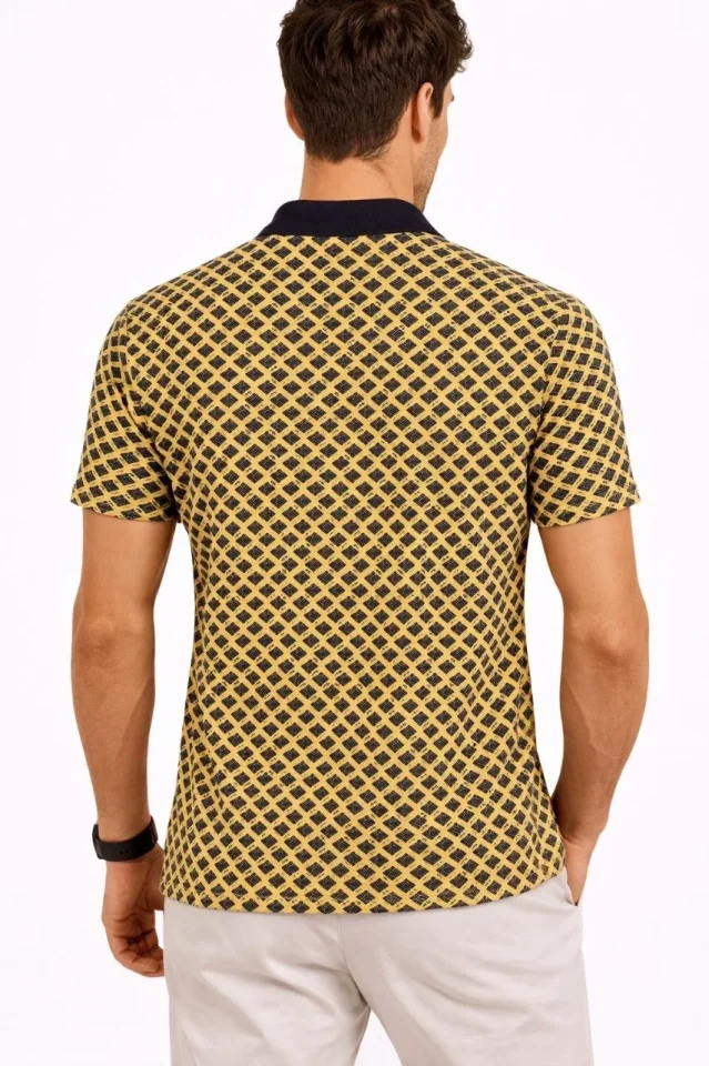 Erkek Pike Kumaş Polo Yaka Desenli Tişört Kısa Kol Yazlık T-Shirt – Sarı