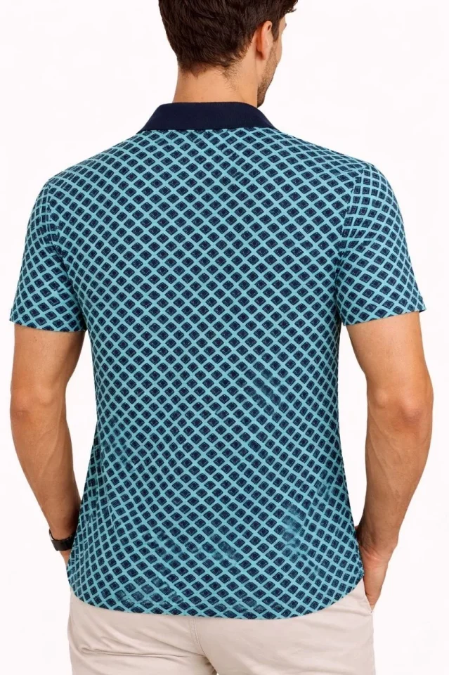 Erkek Pike Kumaş Polo Yaka Desenli Tişört Kısa Kol Yazlık T-Shirt – Turkuaz