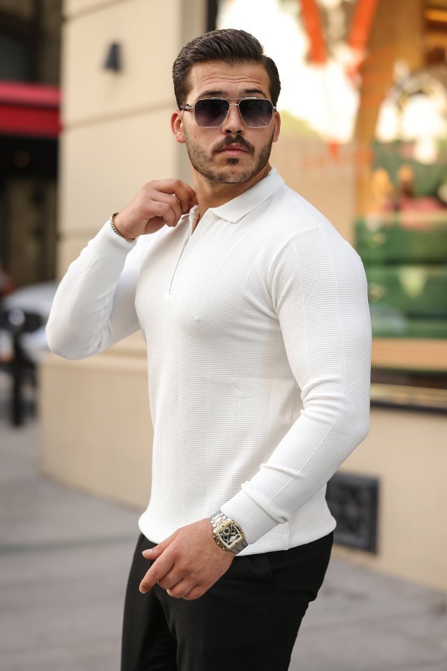 Erkek Pirinç Desenli Uzun Kollu Yakalı Triko