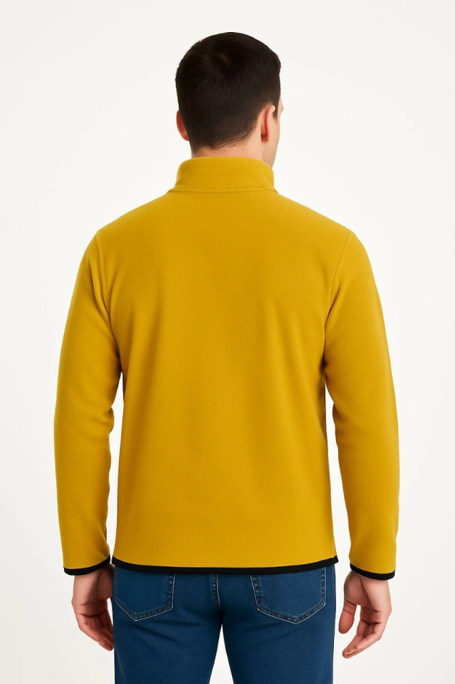 Erkek Polar Kazak – Dik Yaka, Yarım Fermuarlı, Fermuarlı Göğüs Cepli, Siyah Biyeli, Kışlık Rahat Regular Fit Günlük Model – Sarı