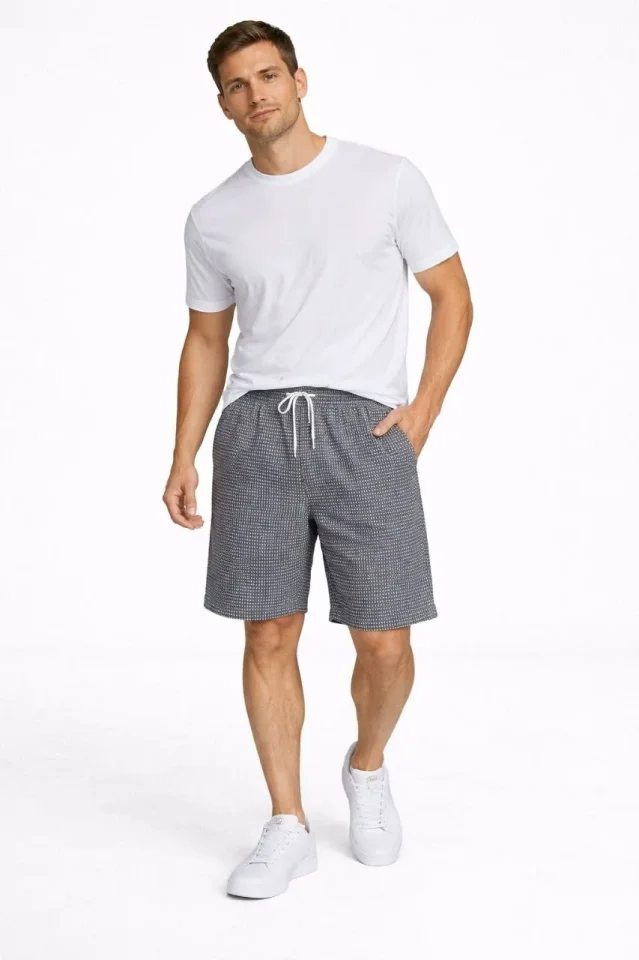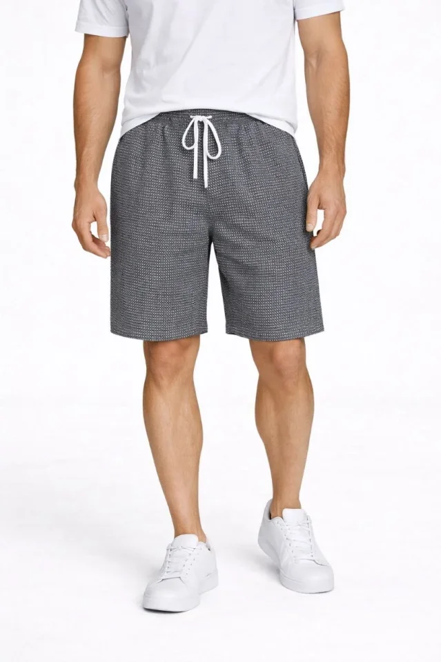 Erkek Pötikareli Şort – Beli Lastikli Bağcıklı, Cepli, Rahat Kesim Günlük Yazlık Şort – Füme