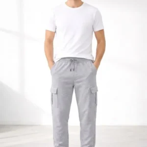 Erkek Jogger Eşofman Altı Regular Fit , Kargo Cepli, Lastikli Paça, Günlük Spor Pantolon – Gri