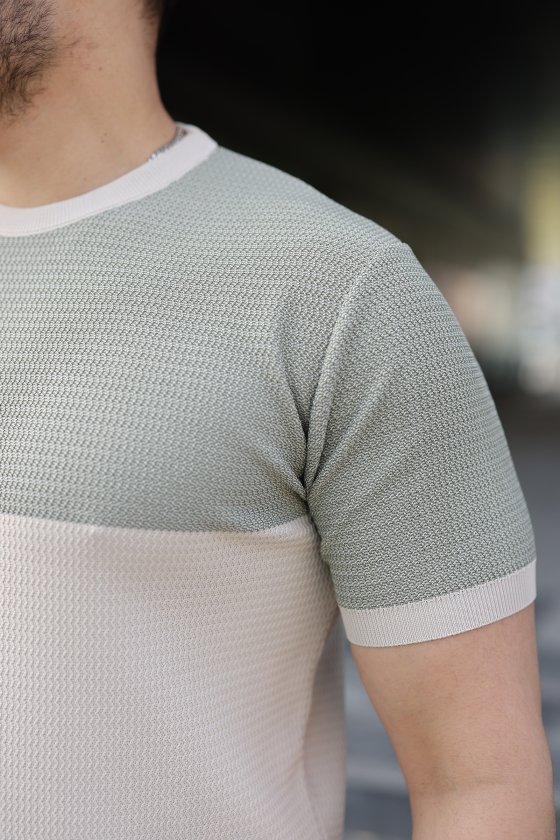 Erkek Renk Bloklu Bisiklet Yaka Kısa Kollu Triko Tişört