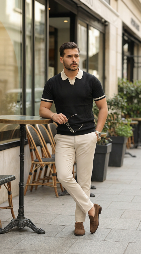 Erkek Örgü Desenli Renkli Kısa Kollu Triko Tişört