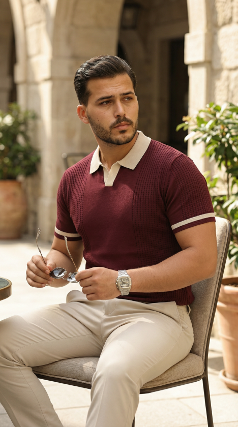 Erkek Renkli Yakalı File Desenli Kısa Kollu Tişört