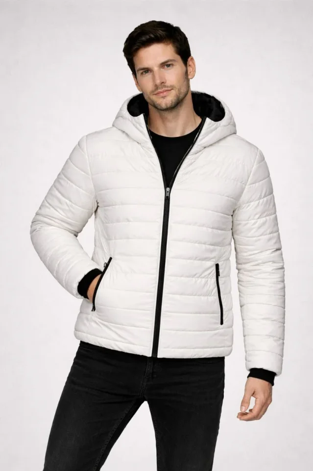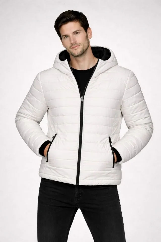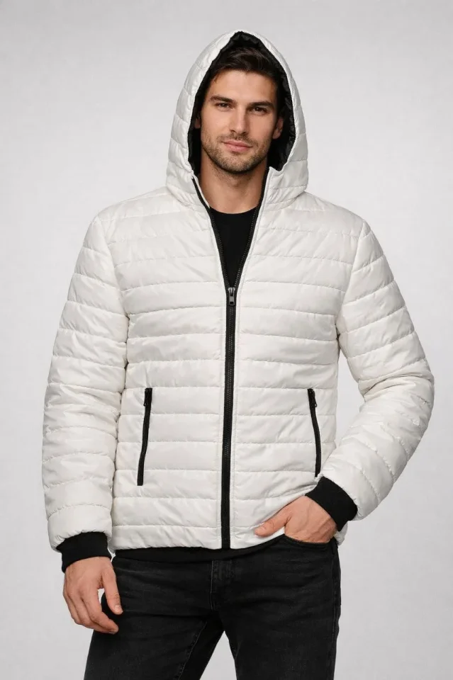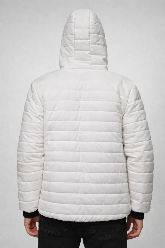 Erkek Şişme Kapüşonlu Fermuarlı Mont Su Itici Kapitone Astarlı Kumaş Cepli Kışlık Rahat Kalıp – Krem