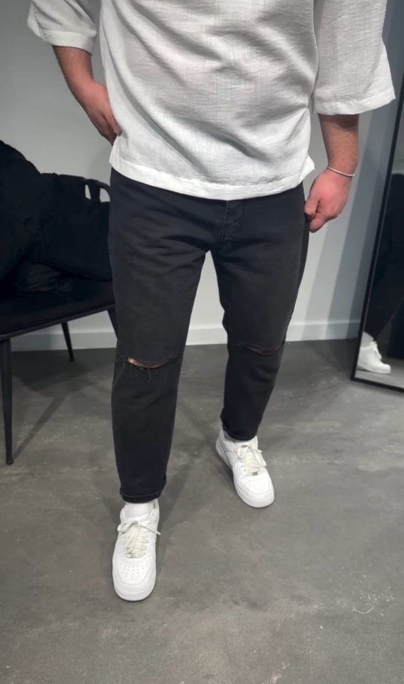 Erkek Siyah Dizi Yırtık Boyfriend Jean