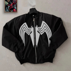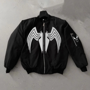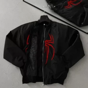 Unisex Uzun Kol Örümcek Baskılı Bomber Ceket – Siyah