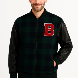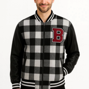 Erkek Kolları Yıldız Sırt Baskılı Oversize Kolej Ceket – Kırmızı