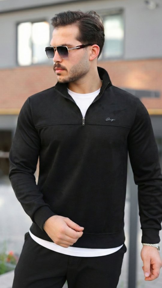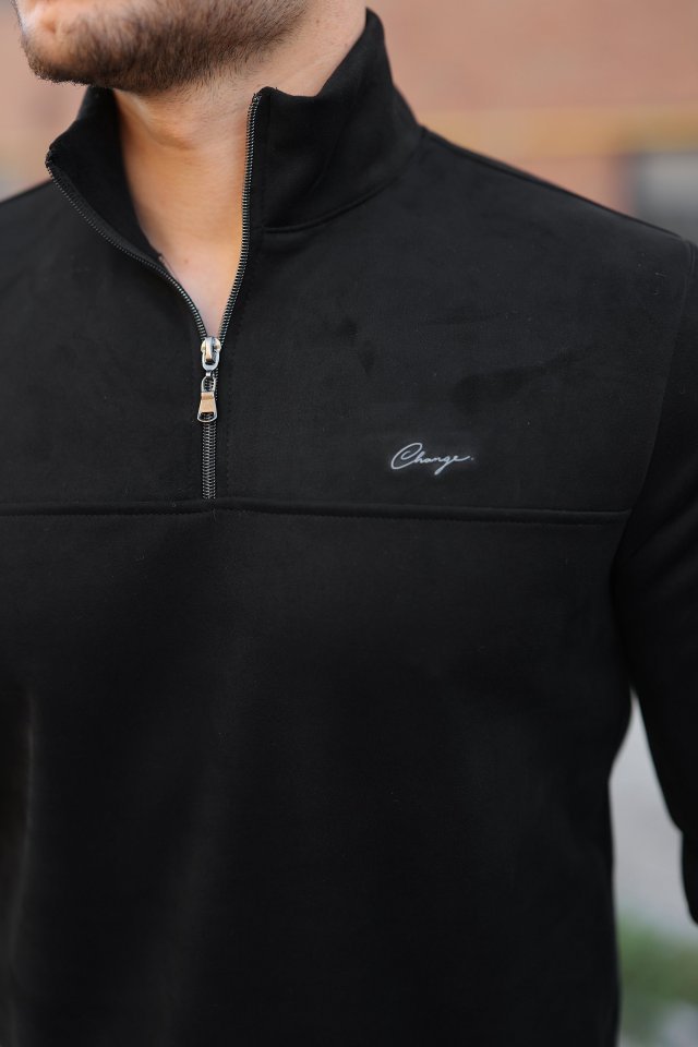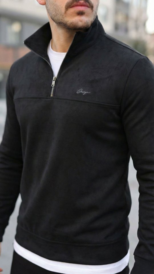 Erkek Süet Yarım Fermuar Dik Yaka Sweat