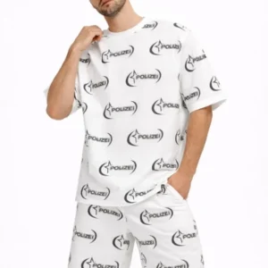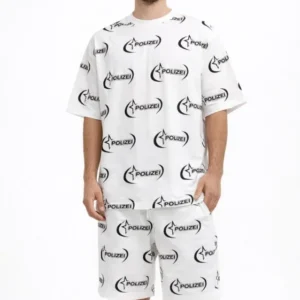 Erkek Oversize Ön Ve Arka Baskılı Tişört Şort Takım Rahat Kalıp Yazlık Günlük Kombin – Beyaz