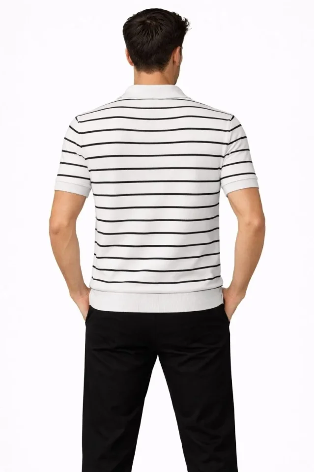 Erkek Triko Polo Yaka Fermuarlı Çizgili Tişört T-Shirt Yazlık Şık – Beyaz