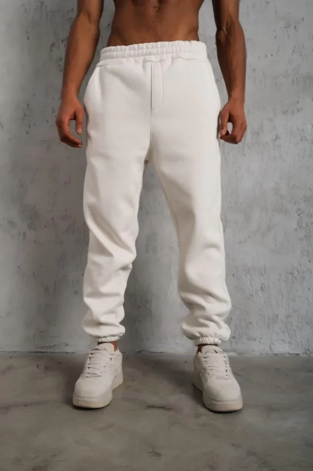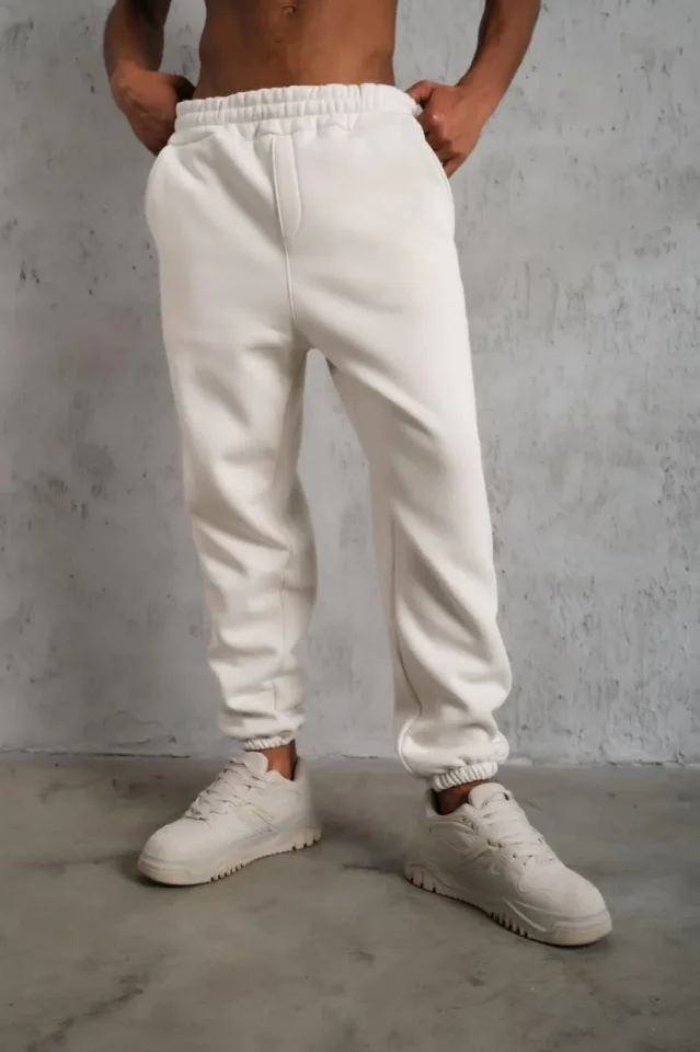 Erkek Üç İplik Alt Eşofman Lastikli – Beyaz