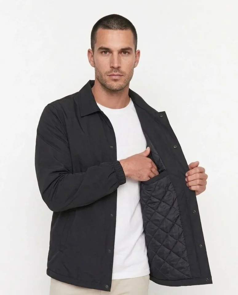 Erkek Yağmur İtici İç Astarlı Çıtçıtlı İç Cepli Dış Cepli Mevsimlik Mont – Siyah