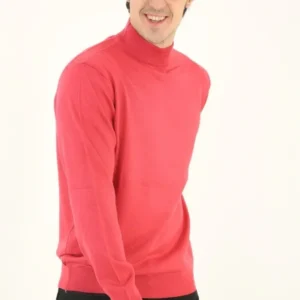 Erkek Yarım Boğaz Triko Kazak Yumuşak Dokulu Pamuklu Ince Dokuma, Uzun Kollu Rahat Regular Kalıp – Pembe