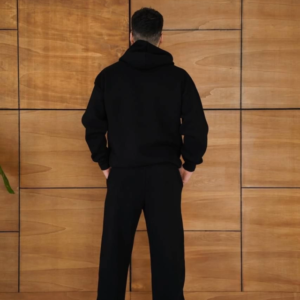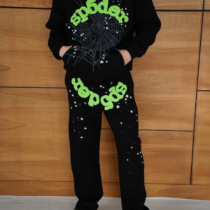 Erkek Kapüşonlu Eşofman Takım Örümcek Ağı Ve Neon Yeşil Baskılı Kanguru Cepli Oversize Rahat Kalıp, Premium Üç İplik Kumaş – Siyah