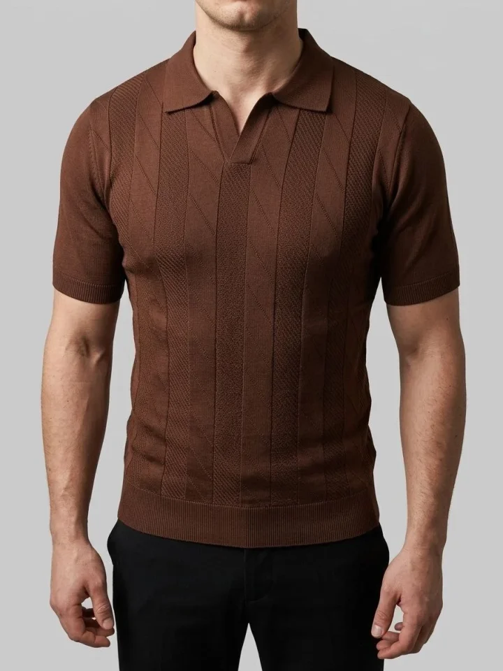 Erkek Yazlık Triko Dokuma Tişört Kısa Kol Polo Yaka T-Shirt – Kahverengi