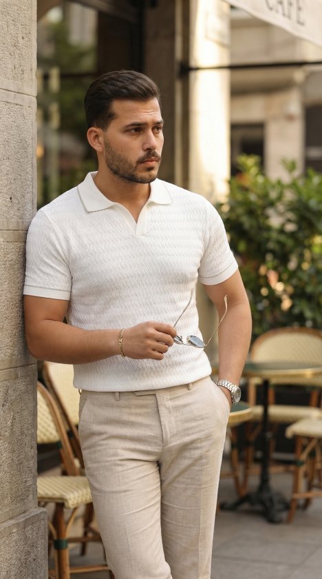 Erkek Örgü Desenli Renkli Kısa Kollu Triko Tişört