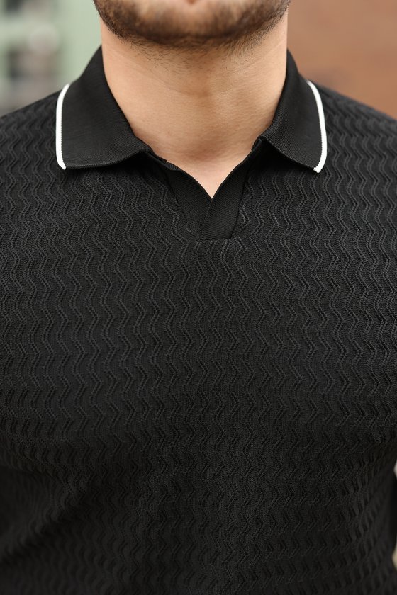 Erkek Zikzak Dokulu Yakalı Kısa Kollu Triko