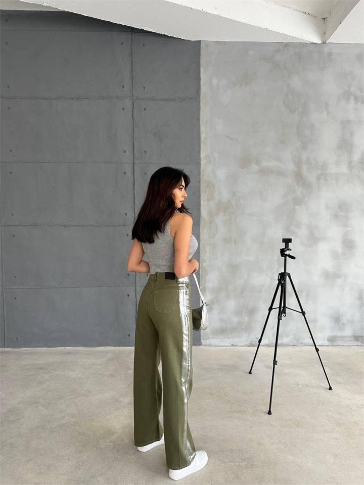 GABARDİN PALAZZO PANTOLON – Haki Modelin Ölçüleri: Boy:165, Kg:55, Göğüs:90, Bel:72, Kalça: 100 Modelin üzerindeki ürün M/38 bedendir