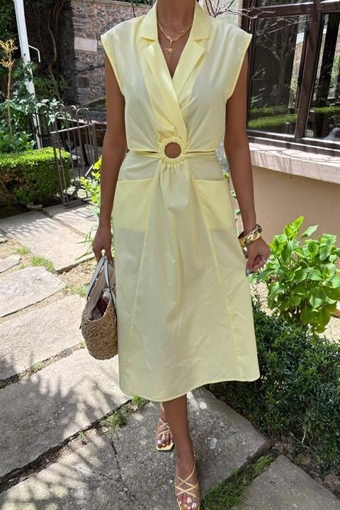 Göbeği Halka Detaylı Midi Boy Elbise 2896