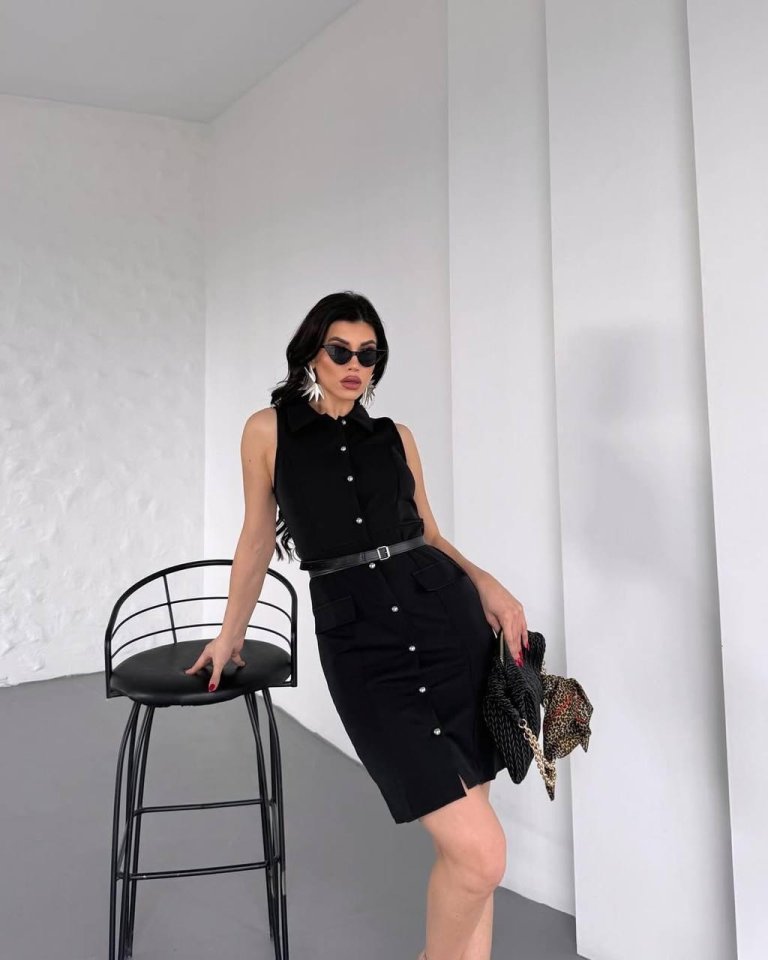 Kadın Kolsuz Bisiklet Yaka Arkadan Fiyonklu Süprem Kısa Elbise