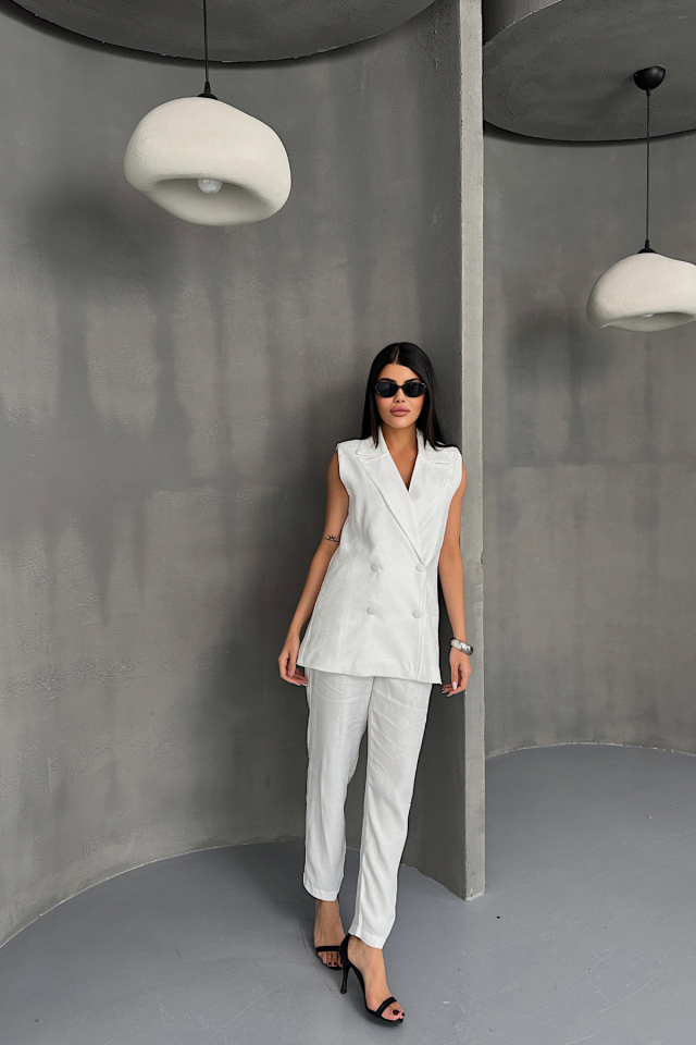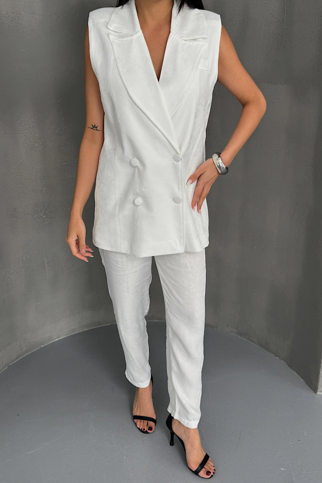 JAKAR KUMAŞ YELEK – PANTOLON TAKIM – Beyaz