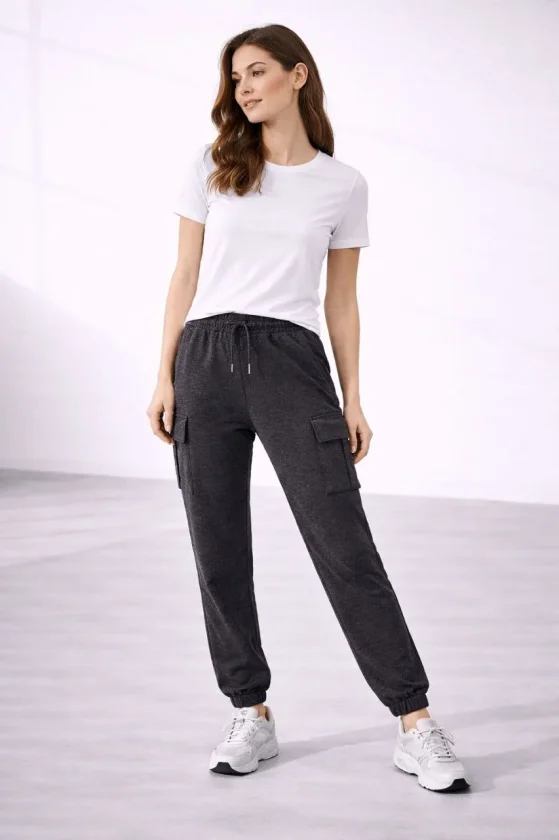 Jogger Eşofman Altı Rahat Kalıp, Kargo Cepli, Lastikli Paça, Günlük Spor Pantolon – Füme