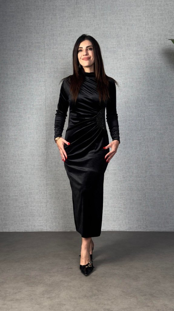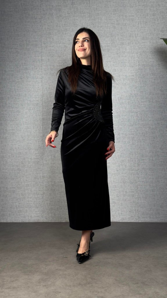 “Kadı Uzun Kollu Omuzdan Büzgülü Yandan Taş Detaylı Uzun Kadife Elbise” için yorum yapan ilk kişi siz olun Yanıtı iptal et