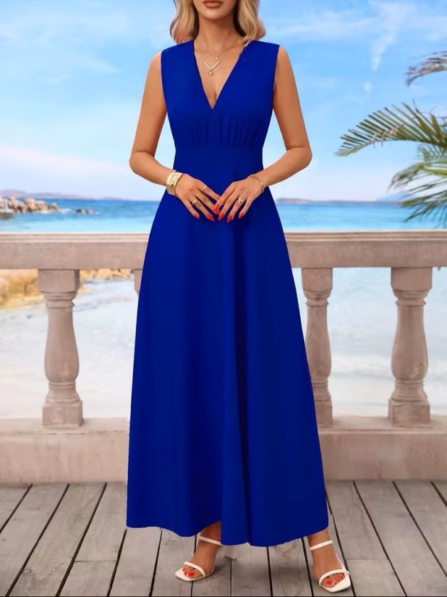Kadın Askılı V Yakalı Bel Korsaj Detaylı Uzun Ithal Krep Elbise