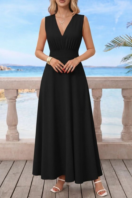 Kadın Askılı V Yakalı Bel Korsaj Detaylı Uzun Ithal Krep Elbise