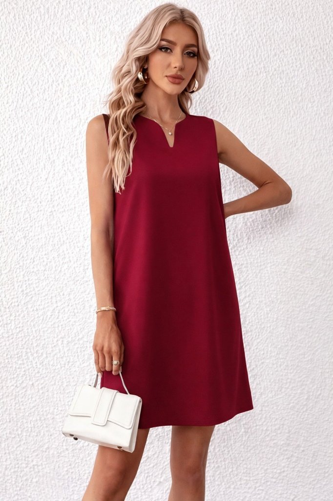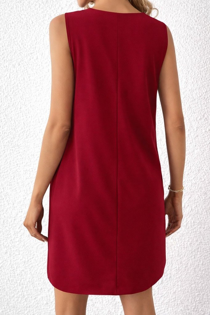 Kadın Kolsuz Bisiklet Yaka Arkadan Fiyonklu Süprem Kısa Elbise