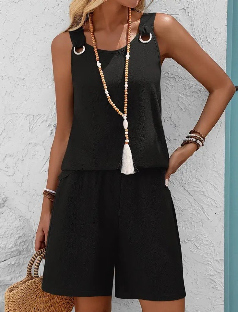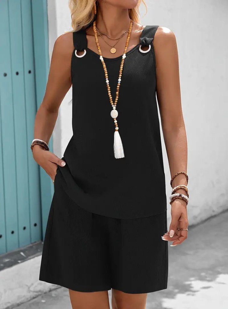 Kadın Askılı Yuvarlak Yaka Kuş Gözü Detaylı Bürümcük Bluz Ve Short Ikili Takım Modelin Ölçüleri: Boy:165, Kg:55, Göğüs:90, Bel:72, Kalça: 100 Modelin üzerindeki ürün M/38 bedendir DESEN-DiğerleriKALIP-Kolsuz-Atlet Gibi