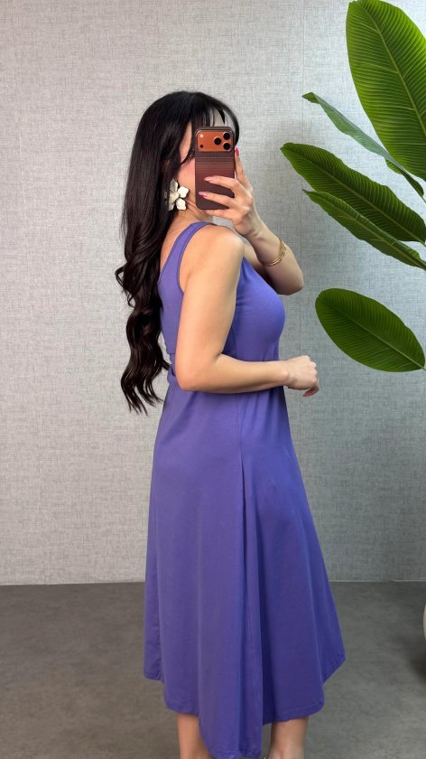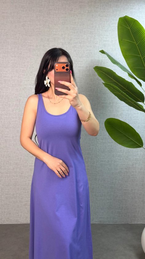 Kadın Askılı Yuvarlak Yaka Süprem Kumaş Elbise Modelin Ölçüleri: Boy:165, Kg:55, Göğüs:90, Bel:72, Kalça: 100 Modelin üzerindeki ürün M/38 bedendir